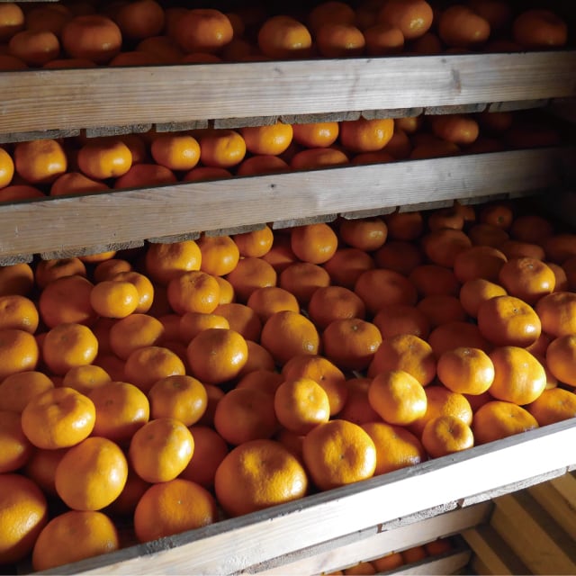 私たちは、徳島県勝浦町で、豊かな水と山の傾斜地を利用して温州みかんを栽培しています。適度な日光と昼夜の寒暖差により育まれる、酸味と甘みのバランスが良い温州みかん。11月中旬頃から年末にかけて収穫し、1か月以上、土壁の蔵で寝かせます。そうすることで酸味が落ち着き、深い甘みを感じられる熟成みかんに変身します。毎年1月中旬頃から2月中にかけて販売しています。