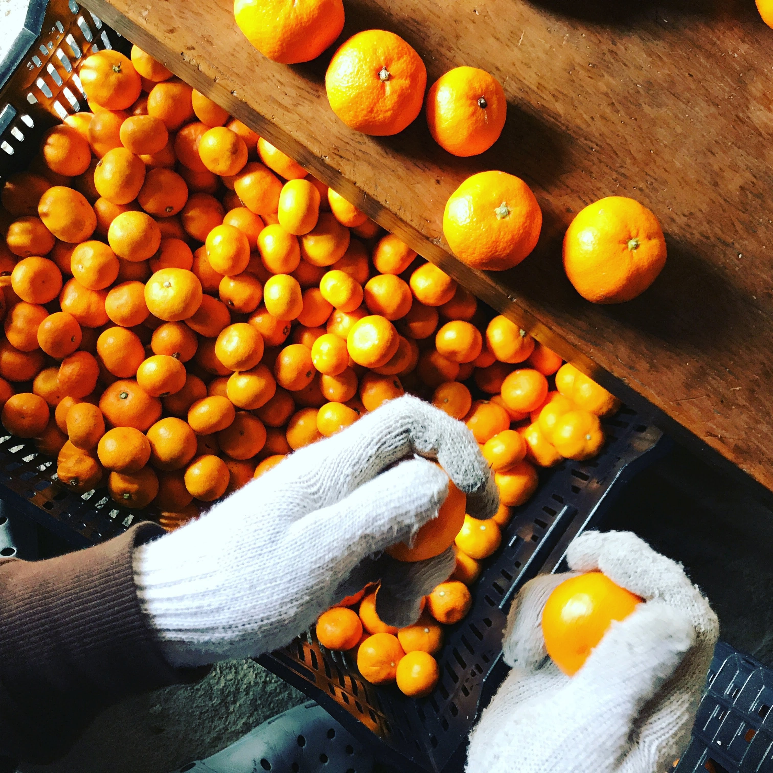 注文をいただいてから蔵から出し、1つ1つ美味しそうな実を手選別して箱詰めしています。そのためサイズは均一ではありませんが、色々なサイズ・表情をしているみかんを楽しめます。